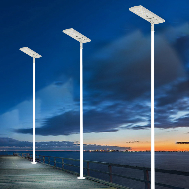 Street light uses solar power to store electricity in lithium batteries during the day and supplies the electricity from the lithium batteries to LEDights at night. The all in one solar light can light for 12 hours at night,and support on rainy and snowy days. it canprovide brightness for 6-8 days or rainy days.