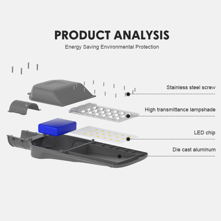 【Heat dissipation】 The aluminum solar LED street lamp housing and lamp body is an ideal choice forheat dissipation.
