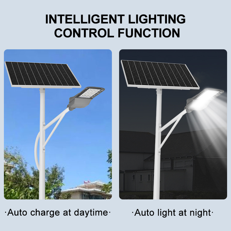 【Intelligent Technology】 This outdoor commercial solar street light has different functions and can be used for variouspurposes. At the same time, the twilight dawn mode allows solar lights to be charged during the dav and run automatically at night.
